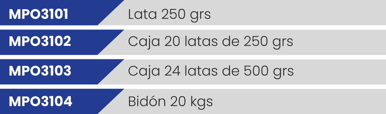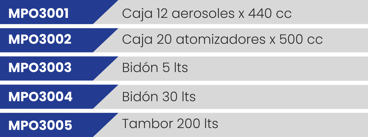 Fluído sintético de alta tecnología que evita que las proyecciones de soldadura (spatter) se adhieran a la pieza trabajada y a los equipos. Estas proyecciones son consideradas uno de los defectos más comunes en los procesos de soldadura, ya que generan inconvenientes y propician la aparición de contaminantes. Ventajas: Sin silicona: Las piezas podrán ser pintadas sin ningún inconveniente. No inflamable. Biodegradable . Lavable con agua. No desprende olores desagradables.