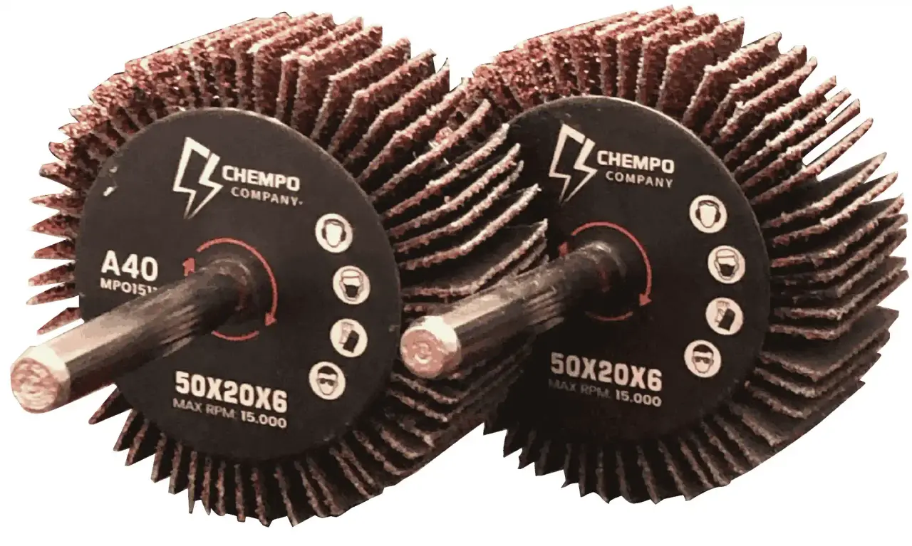 Utilizadas para el lijado y terminación en lugares de difícil acceso como partes internas de tanques, tubos, caños, contornos etc. Puede ser utilizada en taladros, amoladoras rectas o turbinetas. Usadas en la industria metalúrgica en operaciones de rebabado, limpieza, pulido, desbaste de soldaduras, bordes, cantos, superficies planas o de curvas en general.
